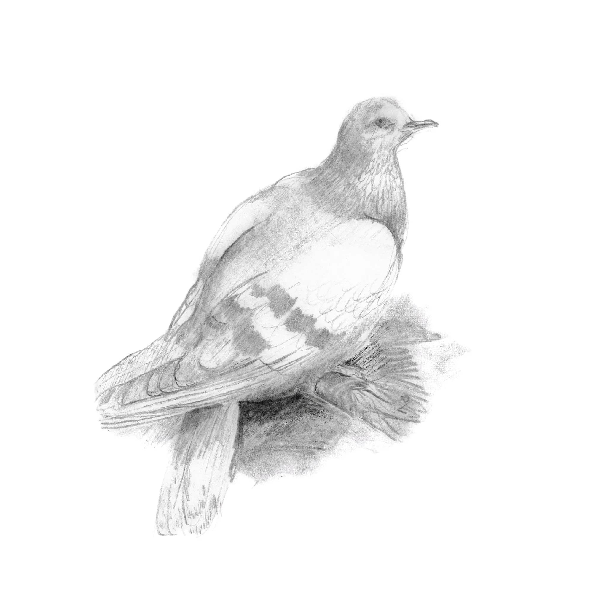 SOLO presents the gentle character of the wood pigeon in a moment of stillness, highlighting its calm and observant nature. Sketched in pencil, the piece utilises subtle shading and fine detailing to evoke the bird's understated charm.